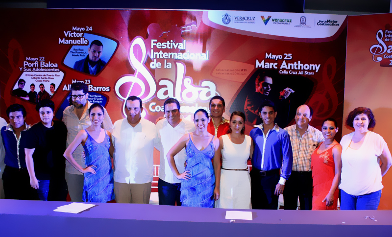 Se reveló finalmente la cartelera para el “Festival Internacional de la Salsa”, que en su cuarta edición, cambiará de sede a la ciudad de Coatzacoalcos; este 28 de abril se reunieron en el salón Olmeca del Centro de Convenciones el Ing. Joaquín Caballero Rosiñol, Presidente Municipal de Coatzacoalcos, la Sra. Christina Cházaro de Caballero, Presidenta del DIF municipal de Coatzacoalcos, la C.P Alejandra Theurel Cotero, Sindica Única de Coatzacoalcos, el Lic. Jaime Francisco Ruiz López, Secretario de Turismo Municipal, la Lic. Brenda Tubilla Muñoz, Productora Ejecutiva del Festival de la Salsa 2014, Lic. Esteban Enríquez España, Presidente de la CANACO Y Director General del Hotel Enríquez, Lic. Alberto Hachmeister Botas, Presidente de la Asociación de Hoteles y Moteles de Coatzacoalcos.