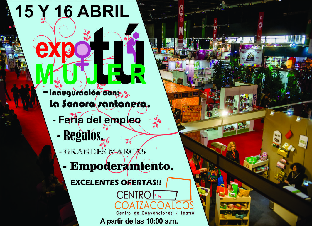 No te pierdas este 15 y 16 de Abril “Expo tú Mujer” a partir de las 10:00 am en el Centro de Convenciones Coatzacoalcos. ENTRADA LIBRE.